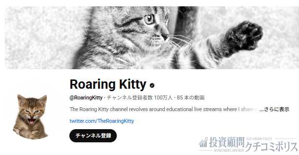 - サイトURLhttps://www.youtube.com/c/RoaringKitty